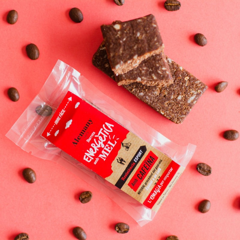 Contiene 50 mg de cafeína natural de la planta del guaraná en cada barrita (equivale a un café).
