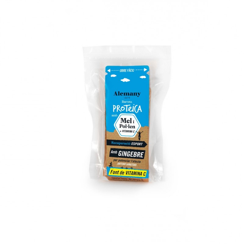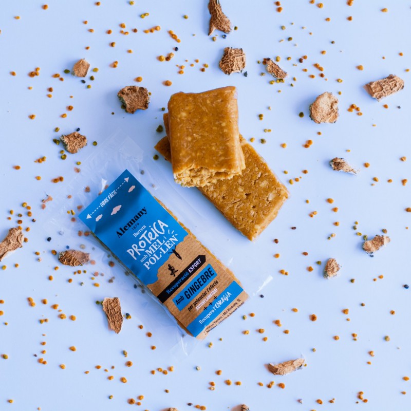 Ingredientes: Avena, miel de romero 25%, almendra, proteína del suero de la leche, polen 8%, mantequilla de cacao, aceite de oliva, jengibre y aceite esencial de limón.