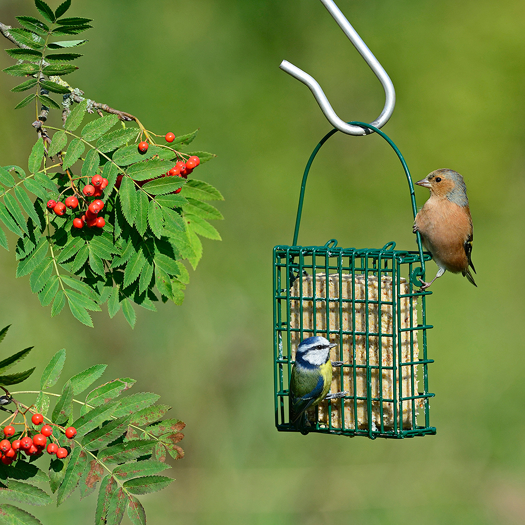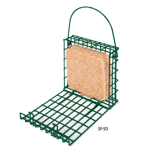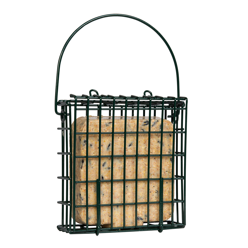 Comedero especialmente diseñado para pasteles de sebo. Tiene una asa para colgarlo y un cierre en la parte superior. De de carga frontal, limpia y rápida. Armadura de acero protegido con un engomado robusto. Se sirve sin el pastel. Con capacidad para 1 pastel.