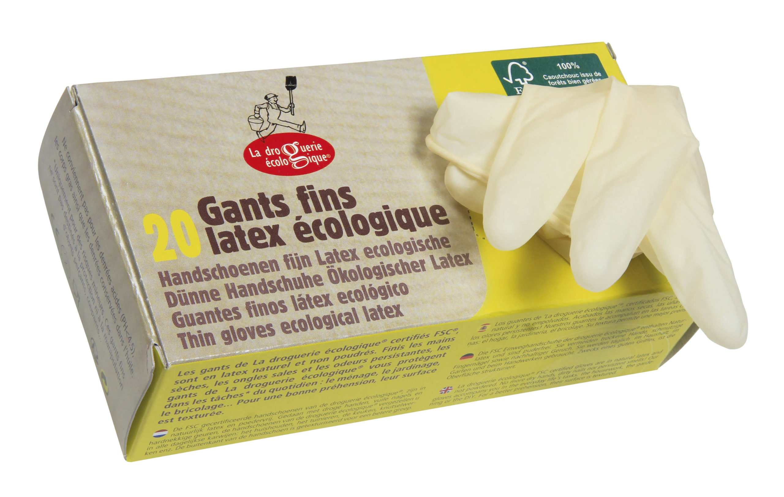 Provenen de plantacions de cautxú administrades de manera responsable i certificades FSC. Programa social ambiciós amb remuneracions avantatjoses i un finançament dels equips col·lectius (Guarderies infantils, habitatges…). Si a les nostres tasques acabem amb les mans seques, les ungles brutes i olors persistents, els guants de La Drogueria Ecològica ajudaran diàriament: Neteja, jardineria, bricolatge… La seva textura permet una millor presió.