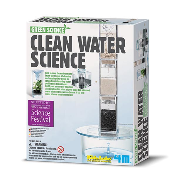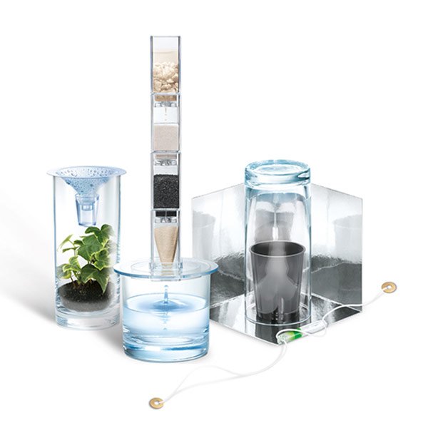 Contribueix a salvar el medi ambient, aprèn amb els experiments inclosos en aquest kit, i diverteix-te observant com funciona aquest filtre purificador. Amb aquest sistema pots fer més experiments: Demostra la manera científica l'extracció de la sal de l'aigua de mar, pasteuritzar l'aigua amb un forn d'energia solar per eliminar microorganismes, i fer un alambí casolà per destil·lar i demostrar com funciona el cicle de l'aigua . Tot el que necessites és un got d'aigua i ja estaràs en camí de la creació de la teva pròpia planta de dessalinització.