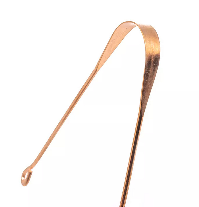 El coure natural tendeix a rovellar-se amb l’ús i el temps. Això és totalment normal i és un indicador de la seva puresa. Per tornar l’aspecte original al raspador de llengua Ayurveda de coure, renta’l amb una barreja de llimona i sal. Frega bé amb els dits (sense utilitzar fregalls), per evitar ratllar el raspador.