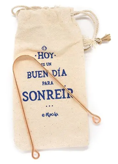 El raspador de lengua llegará limpio. No obstante, si deseas esterilizarlo, simplemente sumérgelo en agua hirviendo durante 5 minutos. A continuación, saque el raspador con precaución y déjelo enfriar antes de usarlo. Recuerde secarlo después de cada uso para evitar la oxidación.[:ca]Raspador de llengua de coure 100% natural que us ajuda en neteja bucal. Elimina bacteris i toxines de la llengua, ajuda a prevenir el mal alè. El nostre raspador de llengua inclou una bossa de cotó. Després de raspallar-te les dents amb un raspall, és important mantenir una higiene dental completa. Fil dental i esbandida poden ajudar, però moltes vegades ens oblidem de com és d’important la llengua i la seva higiene. Amb un disseny elegant i ergonòmic, el raspador de llengua Ayurveda d’e-koala està fet 100% de coure, material de llarga durabilitat i amb propietats antibacterianes. La neteja de la llengua, també coneguda com a raspat de la llengua, és el ritual ayurvèdic diari de raspar suaument les toxines i els residus no desitjats de la llengua. Tradicionalment, aquesta pràctica es realitza amb coure pels seus poderosos efectes antisèptics. La neteja de la llengua elimina els bacteris que causen el mal alè, elimina les toxines del cos, millora la digestió en estimular les papil·les gustatives i ajuda a prevenir el mal alè.